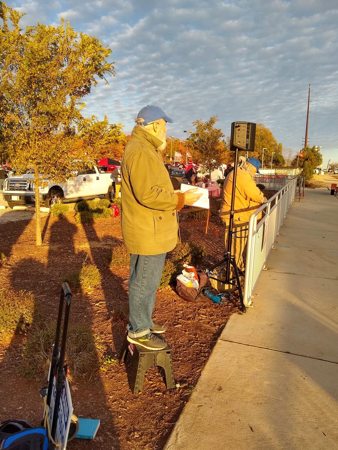 Dan Walczyk, was near the stadium, as people cross from their tailgating and parking areas to the stadium, passing out stoplight preaching as they cross the intersection.